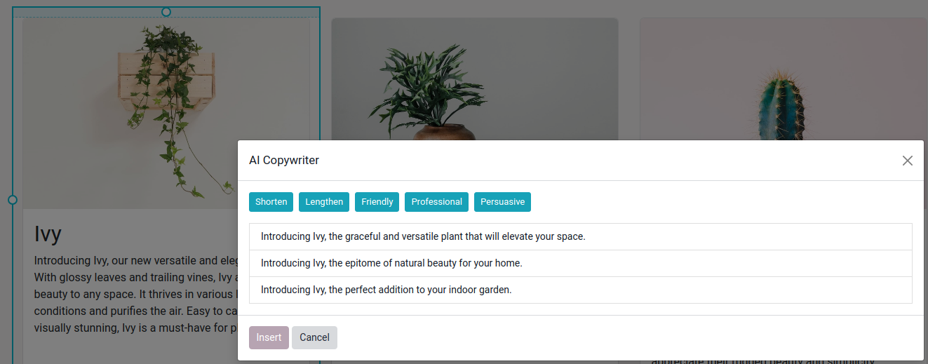 Với sự giúp sức của AI, việc tạo các bài viết, các chiến dịch trên các phân hệ Marketing, hay mẫu email… trở nên vô cùng dễ dàng. Trong INBEE+, việc tạo một website mới là cực kỳ dễ dàng khi nội dung được tự động tạo ra phù hợp với mọi lĩnh vực kinh doanh.